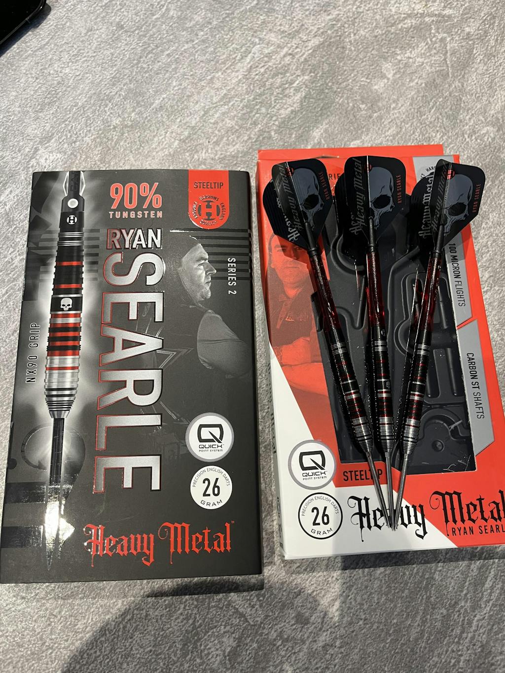 - Complete Setup: Supplied with Midi Clear Carbon ST Shafts and Ryan’s 100-micron Signature "Heavy Metal" Flights.