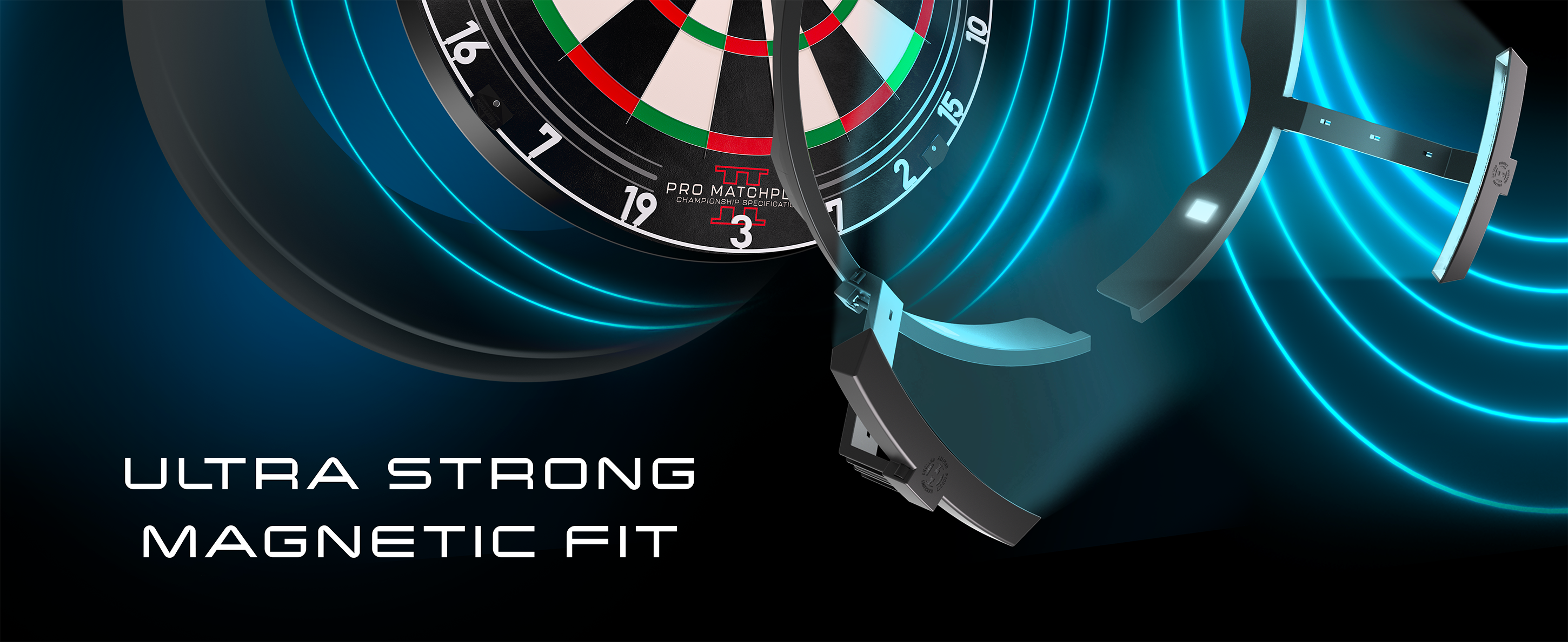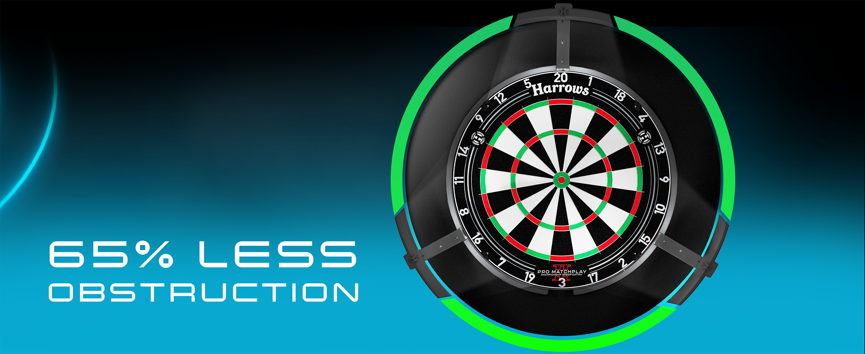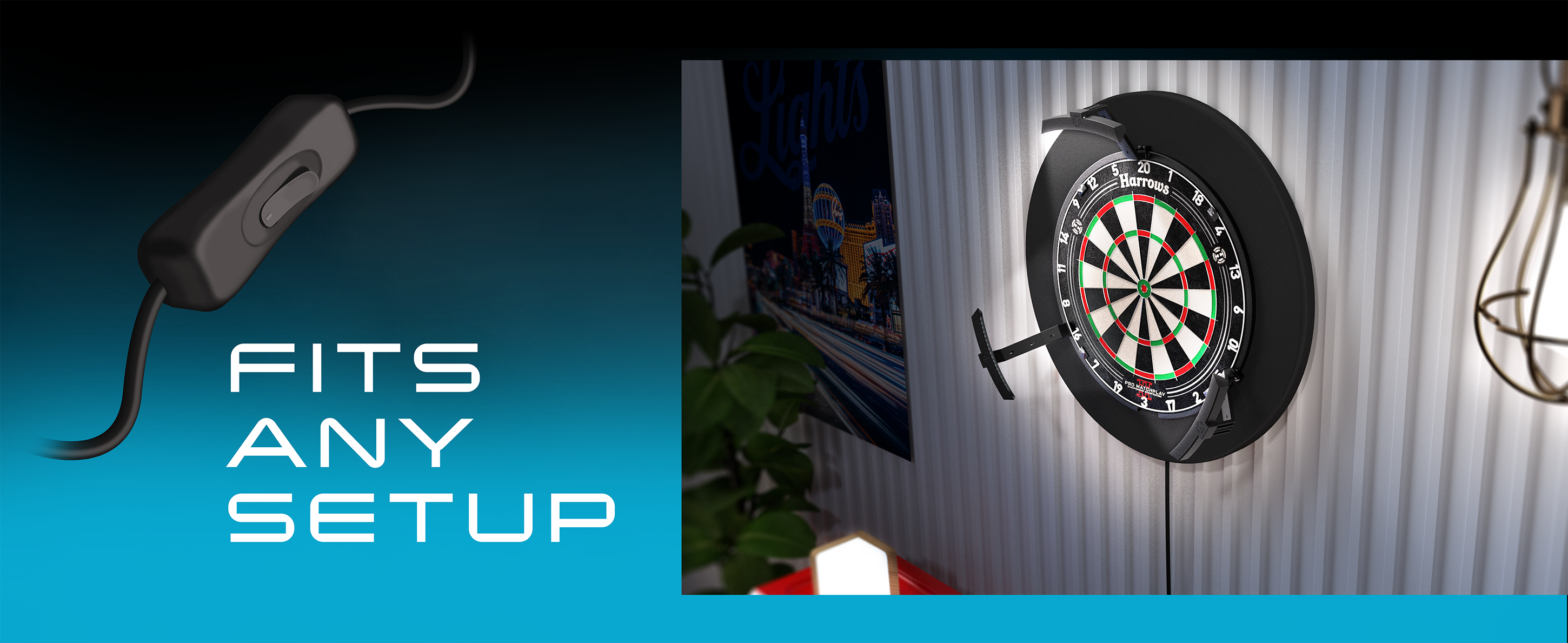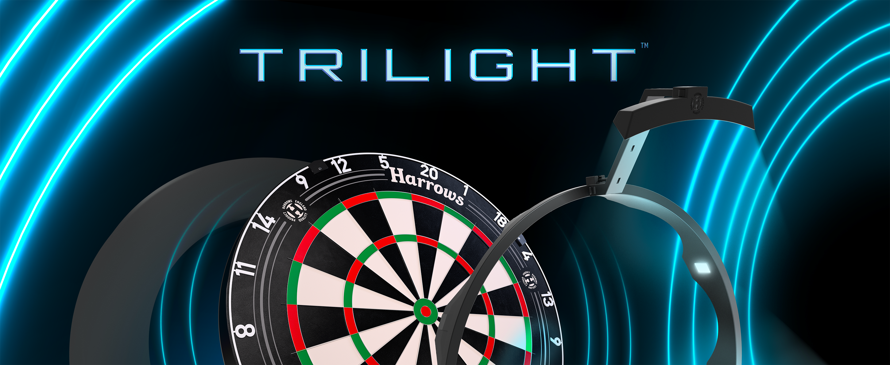 A unique new lighting system, designed to offer players maximum dartboard lighting with minimal obstruction.